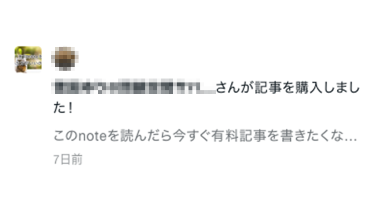 それとですね、有料記事が売れると「〜さんが〇〇の記事を購入しました!」と noteから通知がくるんですよ。
